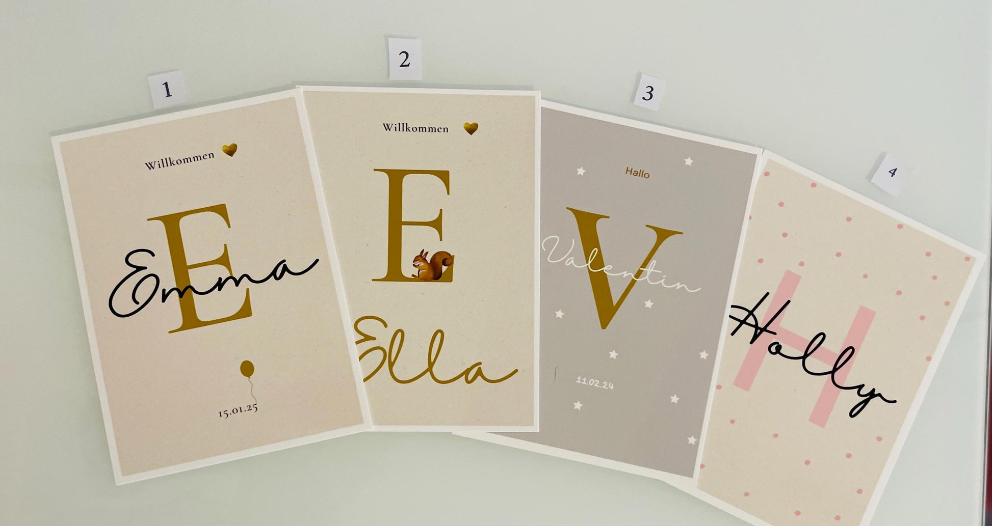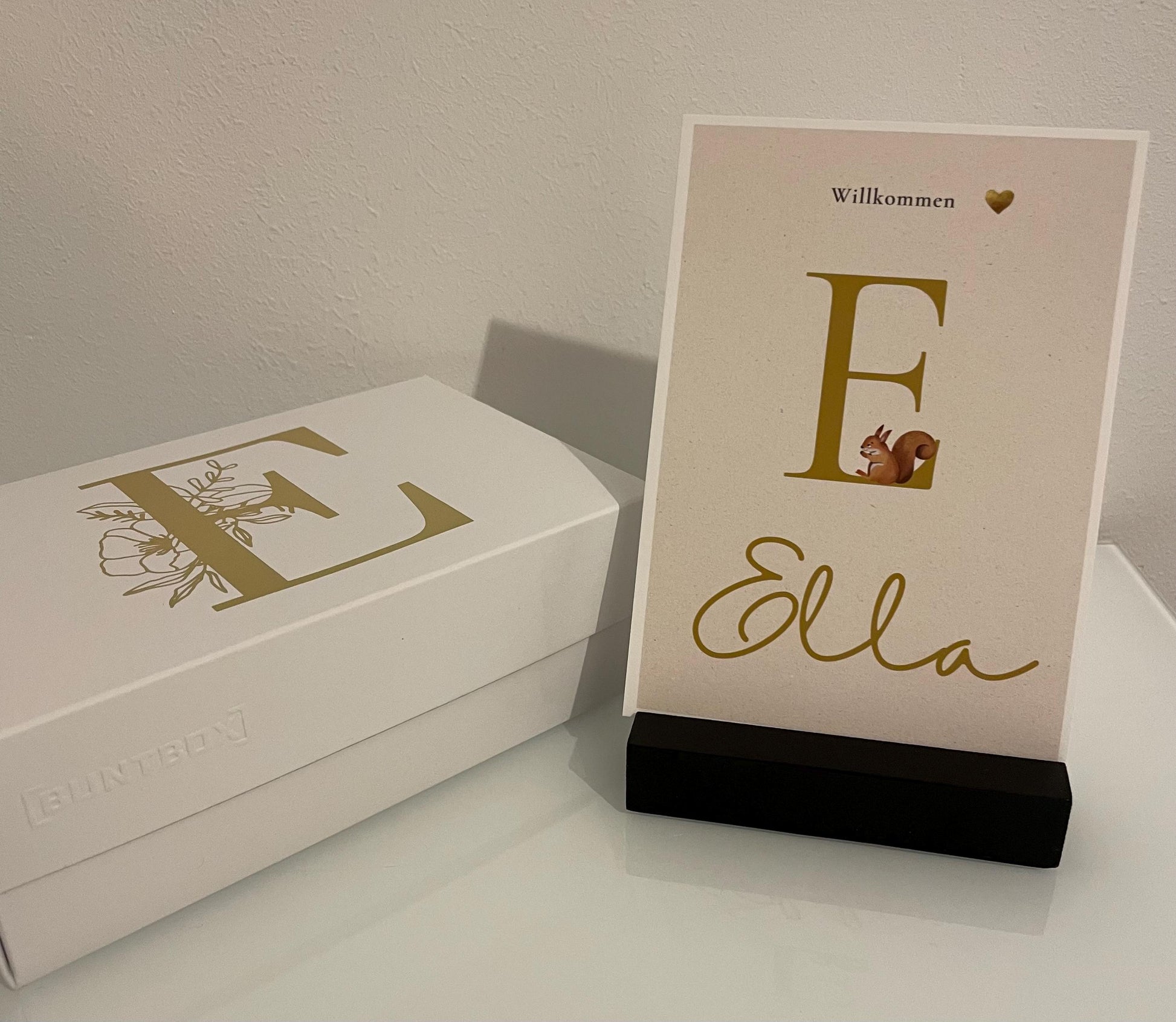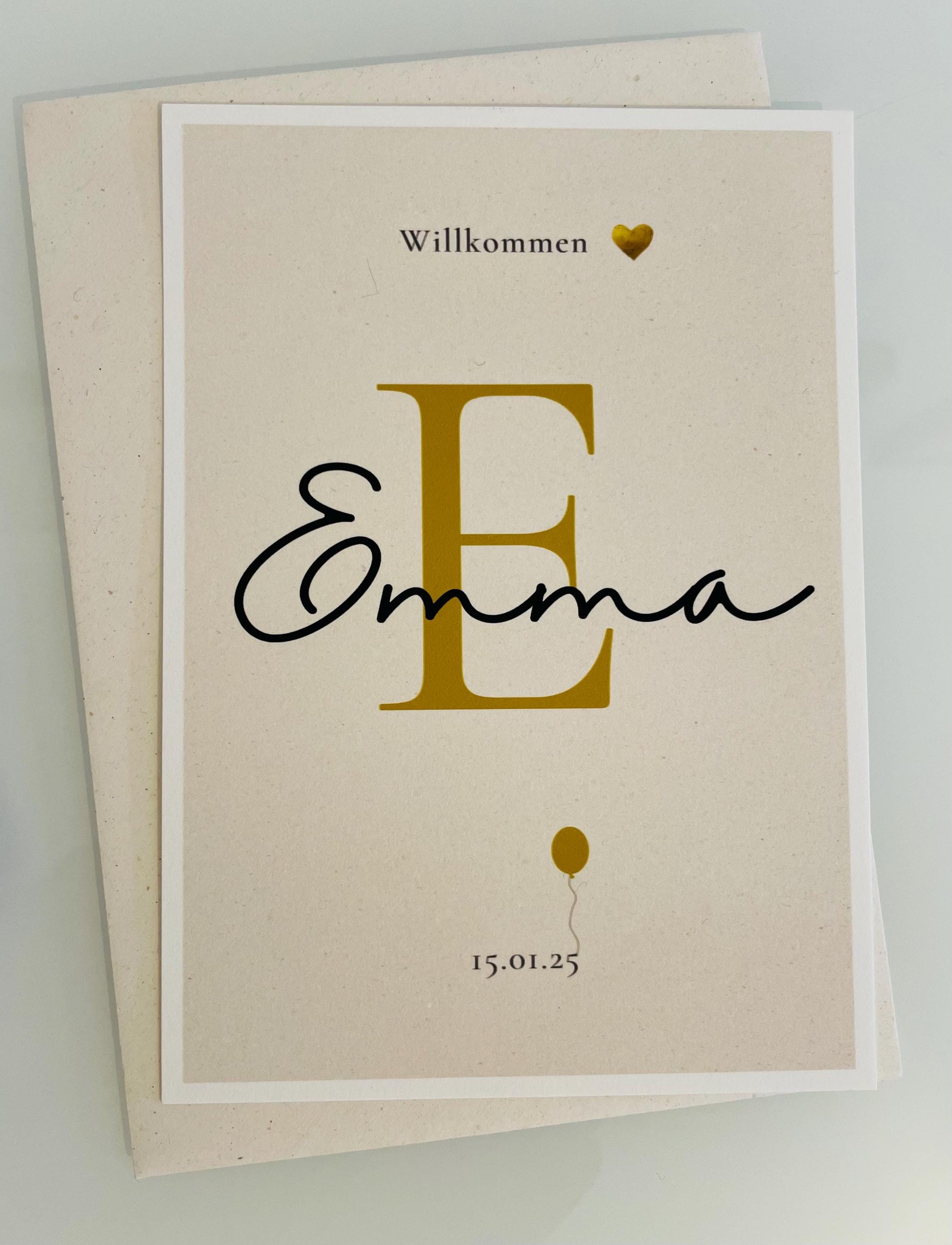 Personalisierte Glückwunschkarte in Größe A6 zur Geburt mit Anfangsbuchstaben und Namen – liebevoll gestaltet für Jungen oder Mädchen. Ideal als besondere Erinnerung zum Einrahmen.