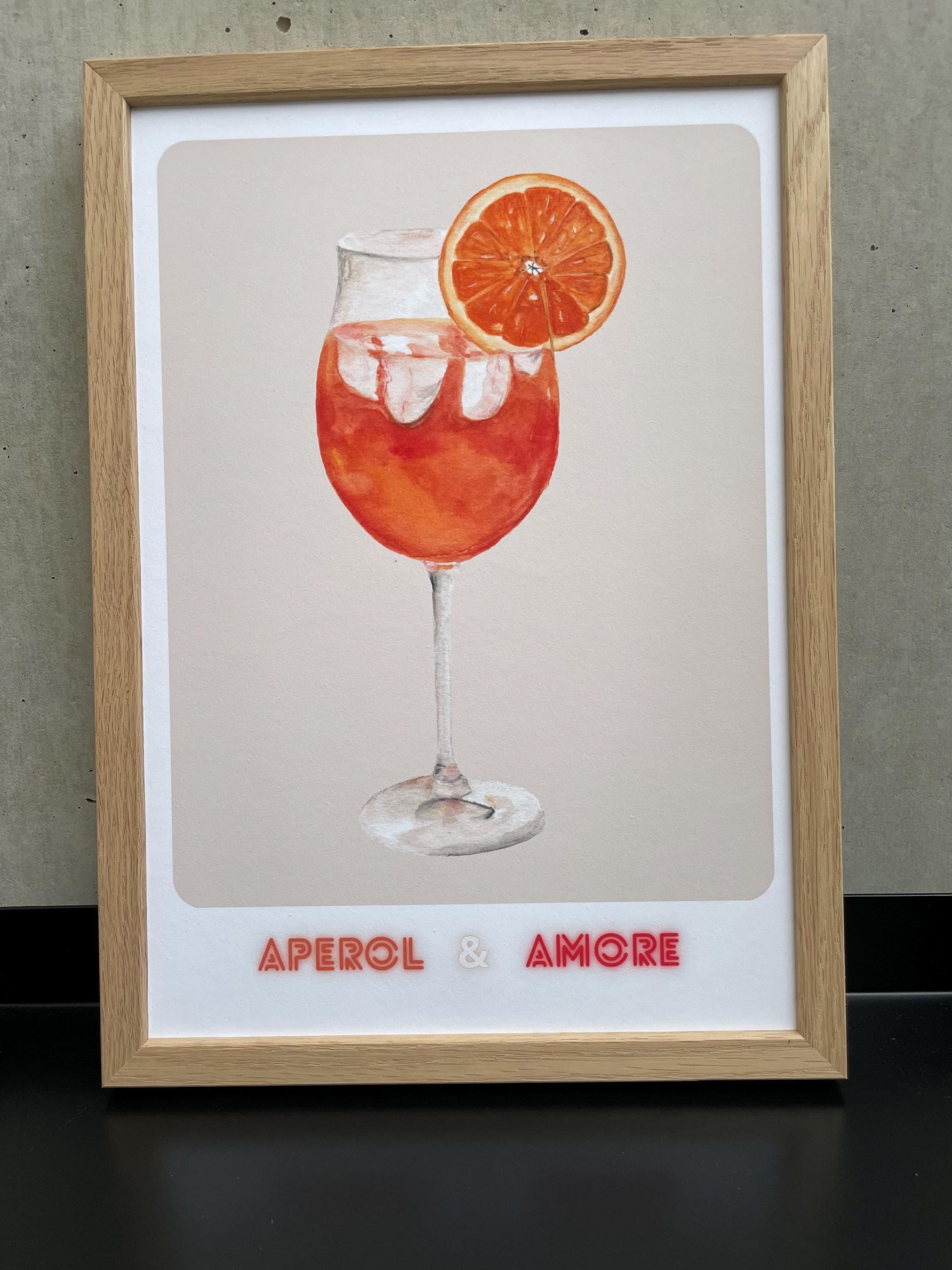 Dieses kunstvoll mit Aquarellfarben gestaltete Poster „APEROL & AMORE“ zeigt ein stilvolles Aperolglas mit Orange und bringt mediterranes Flair in jeden Raum. Es eignet sich hervorragend als Geschenk zu besonderen Anlässen wie Partys, Geburtstagen, Junggesellinnenfeiern, Verlobungen oder Hochzeiten. Wähle zwischen einer gerahmten Variante im schönen Eichenrahmen oder dem Kunstdruck ohne Rahmen. Passende Karten und Geschenkanhänger findest du ebenfalls in meinem Sortiment.